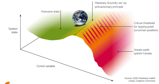 While the best estimate for when the 1.5°C warming threshold will be reached points to 2035, recent analysis suggests it could happen on or even before 2030. Further, some tipping points, such as large-scale die-off of coral reefs, may have already been breached. Taken together, all of the above threaten to drive step changes in climate change and its impacts. It’s possible we’re already on a path to cross thresholds that tip the Earth into an irreversible, fast slide into a permanently altered state. The graphic below, taken from the same report mentioned above, visualizes this risk well: