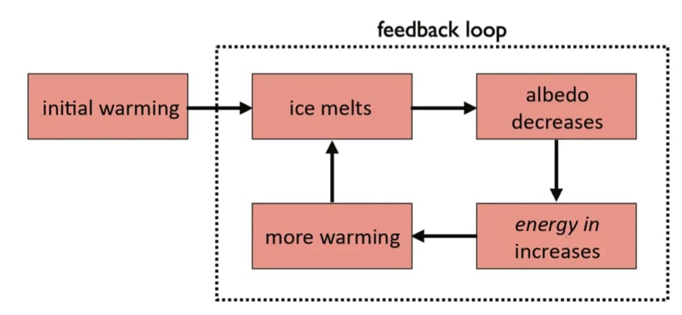 Loss of natural reflectivity: As the planet warms, we also see losses of reflectivity that exacerbate warming; as reflective surfaces and particles are lost, more energy is retained in Earth’s net energy balance. The Arctic summer sea ice extent is a well-documented example, and a similar pattern holds across many Arctic and Antarctic regions. Reductions in the summer Arctic sea ice extent already account for ~25% of observed global warming.