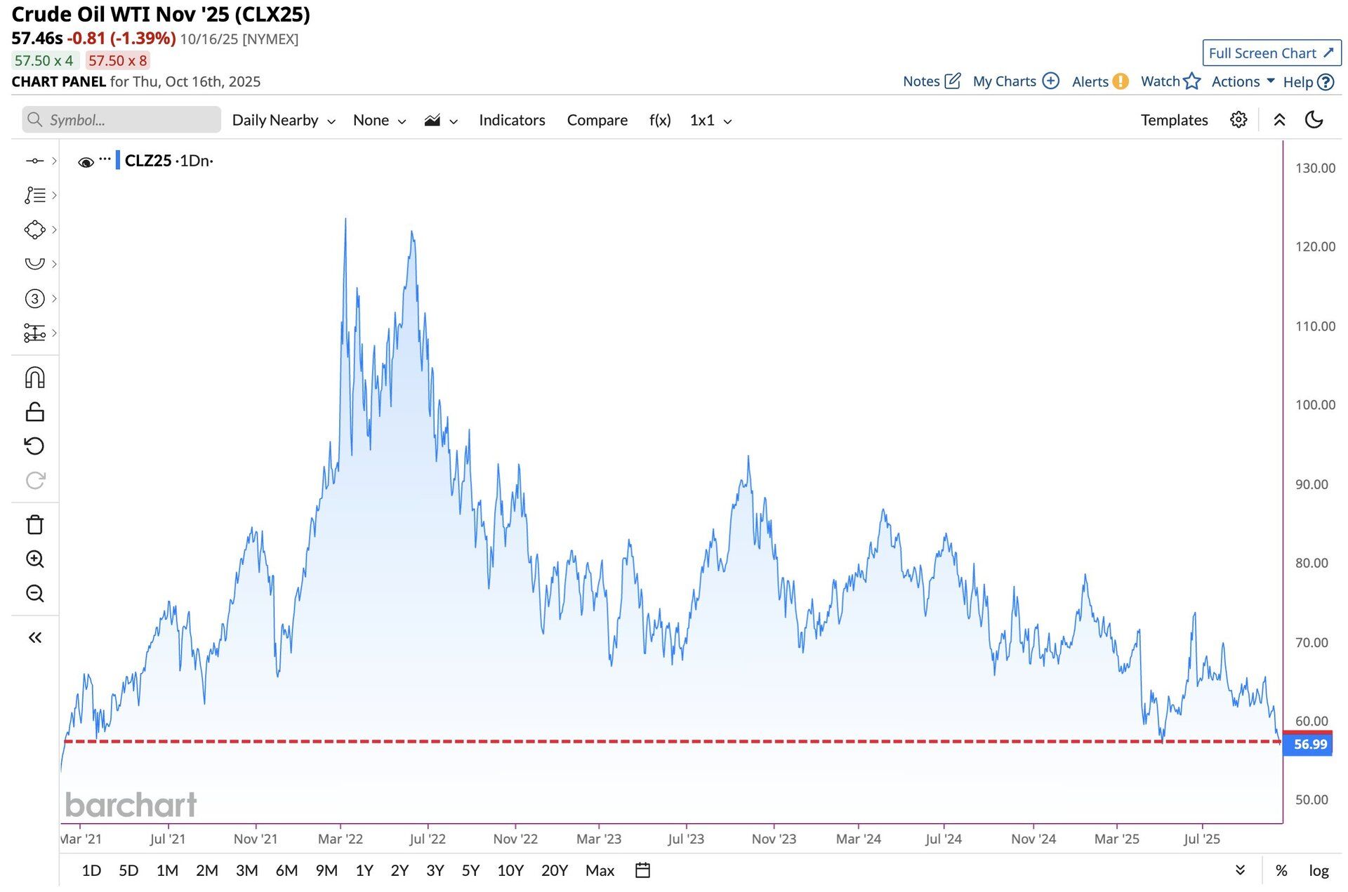 • Crude oil prices are falling again, a highly negative signal for the global economy and a strong disincentive and counter to the prospects of “drill, baby, drill” in the U.S. Link.